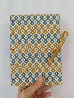 Carnet de recettes – motifs géométriques tons jaune et bleu